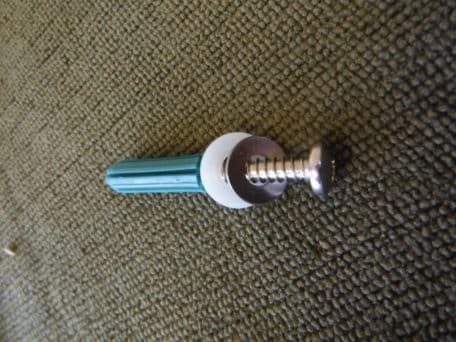 self tapping stainless steel screw with stainless steel washer and nylon protector washer together with a wall plug fixing in a pack of 4