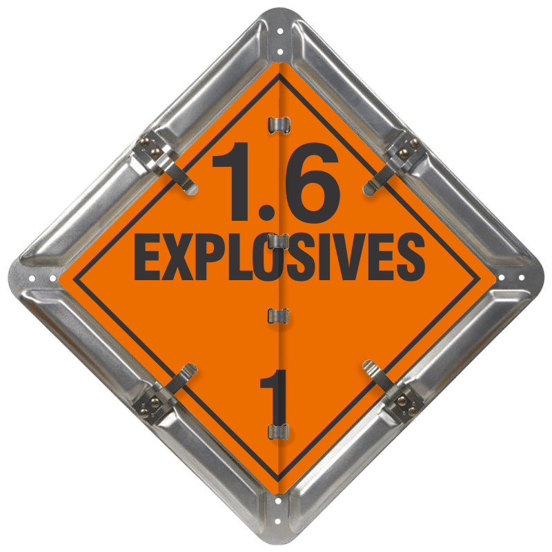 270mm Explosive flip sign kit – Explosives 1.1, Explosives 1.2, Explosives 1.3, Explosives 1.4, Blasting Agents 1.5, Explosives 1.6, Dangerous placard flip panels. Measurement side to side is 350mm