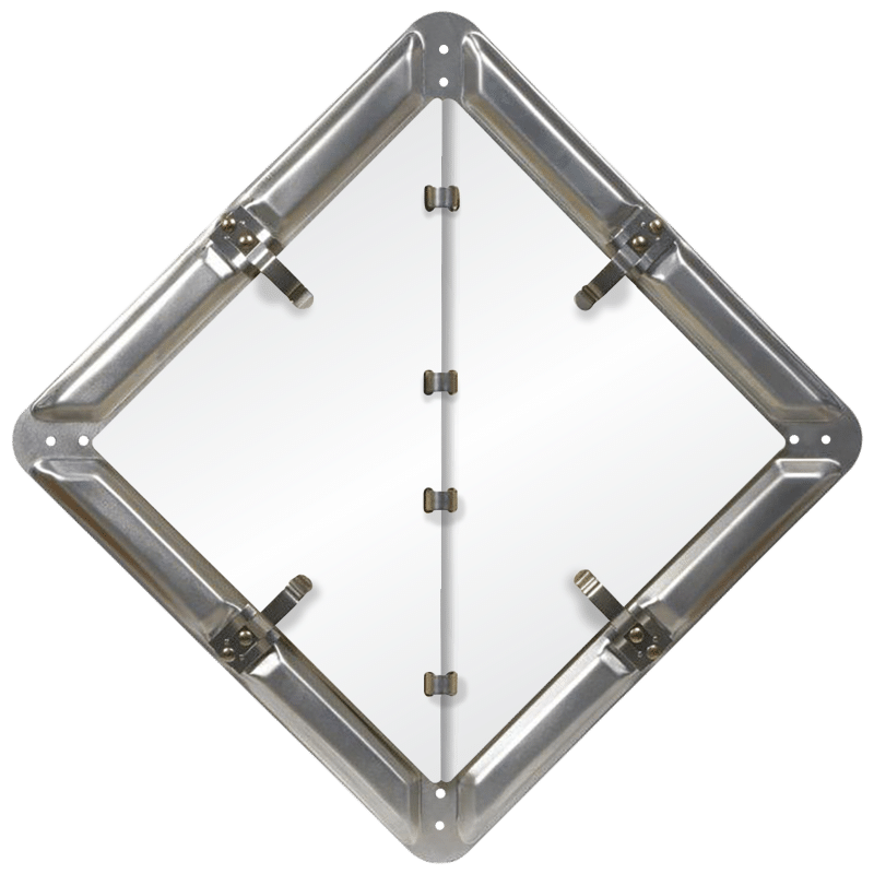 - Four double-riveted stainless steel pressure fasteners lock each panel firmly in place