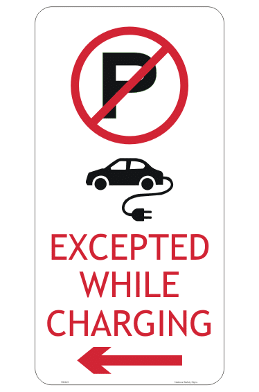 QLD Electric Vehicle sign TC1909 Electric Vehicle Charging Station sign. Indeed, Queensland has different EV Charging station Signs than the rest of Australia. Importantly, this sign depicts the no parking annulus and an electric car. Located below is the text, ‘Excepted while charging’.